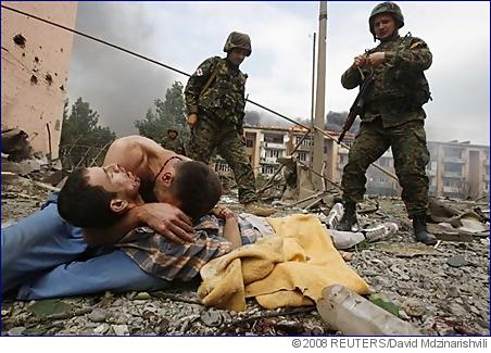 Více než 130 gruzínských civilistů vězní jihoosetské úřady v regionálním hlavním městě Cchinvali. Vězni byli náhodným způsobem zatčeni na ulicích města, podle jejich národnosti, brzo po vypuknutí války před 10 dny. Jsou vězněni na dobu neurčitou a cchinvalské úřady je chtějí vyměnit za jihoosetínské civilisty, údajně unesené gruzínskými vojáky během konfliktu. |