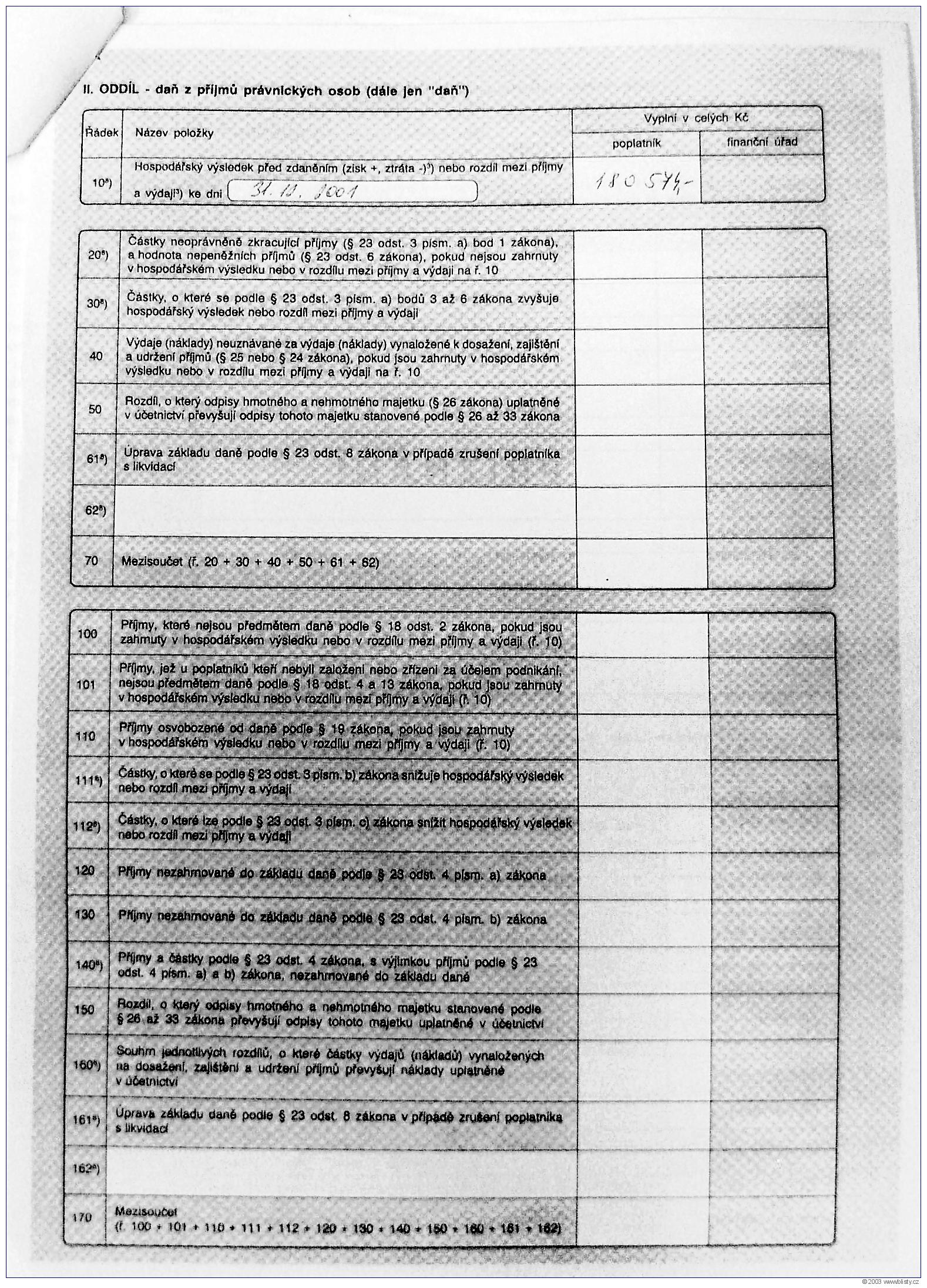 Přiznání OSBL k dani z příjmu právnických osob za rok 2001Usnesení obvodního oddělení Police ČR v Praze 3 o odložení trestního oznámení na Tomáše Pecinu