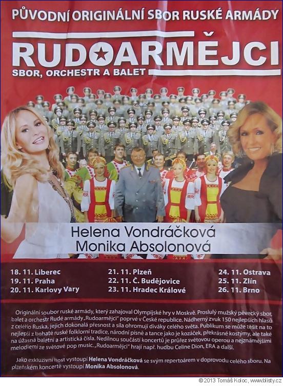 Propagátorům plánovaného turné "Rudoarmějců" v ČR se podařil svého druhu rekord. Začíná už tím, že žádný sbor, který by se oficiálně jmenoval Rudoarmějci, pravděpodobně neexistuje ("Byli jsme překvapeni, že na plakátech v Praze je soubor prezentován jako Rudoarmějci, protože se jedná o Akademický soubor ministerstva vnitra, na rozdíl od Alexandrovců tedy nemá s Rudou armádou nic společného..." říká jejich mluvčí ZDE), a to i přesto, že přiložená verze plakátu jeho turné v nás posiluje víru dvěma synonymními adjektivy za sebou ("PŮVODNÍ ORIGINÁLNÍ sbor...") a navíc ztotožňuje 67 let neexistující Rudou armádu s ozbrojenými složkami dnešní Ruské federace ("... RUSKÉ armády").