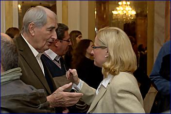 Ano, jsou tu... Pokouším se je počítat, ale vidět je pouze jeden, snad proto že je nejvyšší? Bývalý ministr zahraničních věcí a několikanásobný velvyslanec Jaroslav Šedivý, jenž sám vydal několik knih pamětí, je středem pozornosti a mírně obletován. Lichotí mu to, usmívá se lišácky. O tom, zda byl milencem protagonistky, ovšem nikdy nic nenapsal, můžeme si tedy pouze zdvořile myslet, že byl toliko „rytířem bez bázně a hany“. Oddaným diplomatem nové křehké demokracie – v Paříži, Bruselu i Bernu. Třeba o tom ještě napíše, jak v té své poslední knize, co vydal, slibuje (viz: název) ; už jenom pro pořádek – a jaksi pro historickou pravdivost, že? Jistě by to nikomu sám neodpustil, Masaryk měl přece také milenky (a mladé), takže bude dobré jednoho dne začít u sebe... Ne, není to pravda, všichni milenci tu nejsou, hlas neměl pravdu. Nejsou jenom milenci obletovaní, jsou patrně i zhrzení, co nedorazili. Možná, že je Monika nepozvala?
