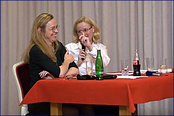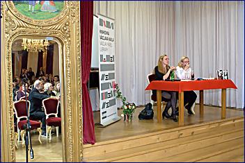 Tento pseudorokokový sál v Lucerně ale nevyvolává duchy, nevím o nich, pouze nostalgii – a vzpomínky už skoro zaváté. Ale nějak stále živé. Andrea má při čtení trochu pikantnější úryvky, nezapomene na historku o udělení azylu na 17. listopad, a Monika se soustředí na to, jak prožila ten „masakr na Národní třídě“ naživo, a potom, jak přivedla Havla mezi studenty, kteří by jinak, chudáci, ani nevěděli, kdo to ten Havel byl. Ještě, že jim to Monika řekla! Zasloužila by vlastně medaili, že?