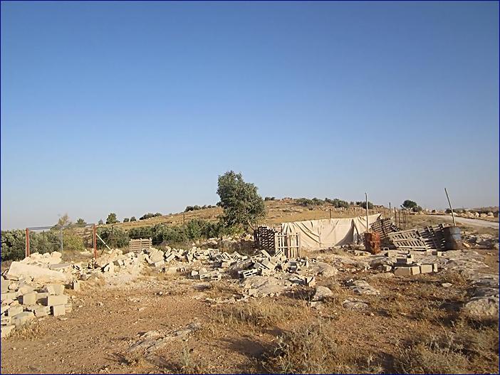 Ukrytá palestinská budova. Mohla by být zbouraná. Některé zděné budovy mají umělohmotný kryt: