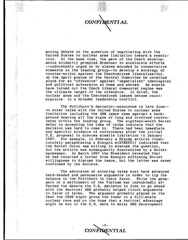 POLITICS IN THE SOVIET POLITBYRO AND THE CZECH CRISIS